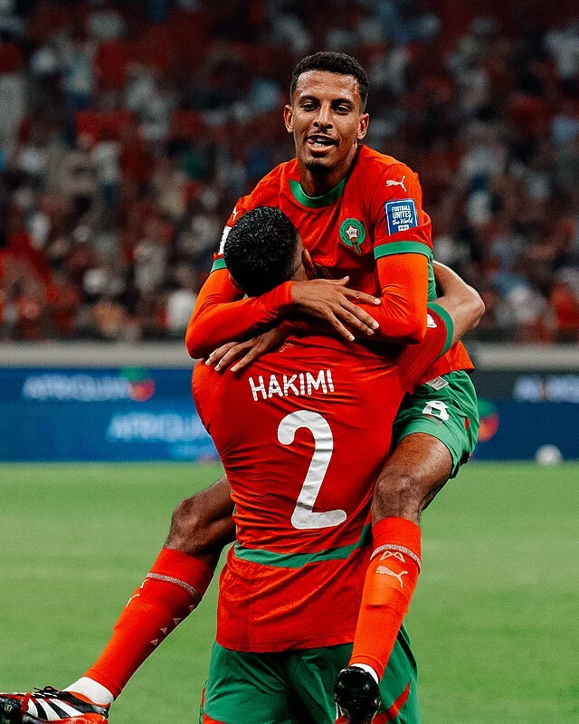 اللاعب عز الين أوناحي و أشرف حكيمي و نشوة الإنتصار/المصدر/ويكيميديا